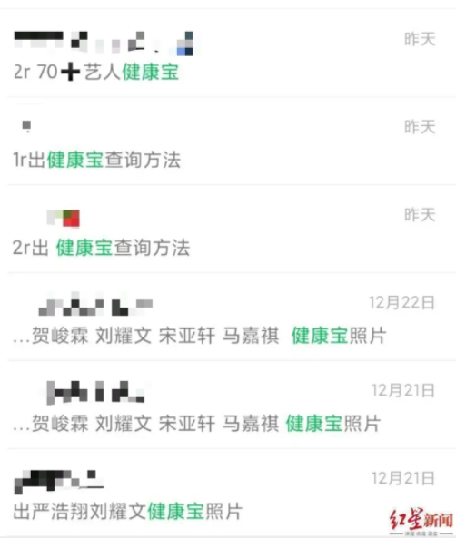 代拍群中售卖明星“健康宝照片”与查询方法