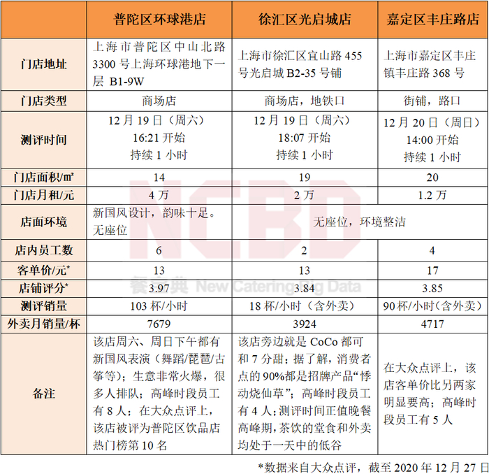 (1)测评时间为12月份,属于传统的茶饮淡季,和七八月份这种一年中的旺季相比,门店的销量普遍会有一定下滑,而且这种趋势会一直持续到春节前;