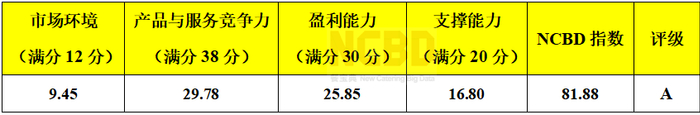 根据NCBD评级模型,针对悸动烧仙草的最终测评,其NCBD指数为:81.88,级别为A。