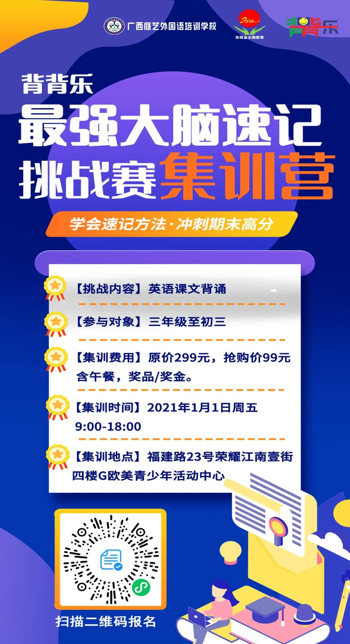 金太阳·庭艺教育——背背乐速记英语单词及课文背诵寒假七天集训营!