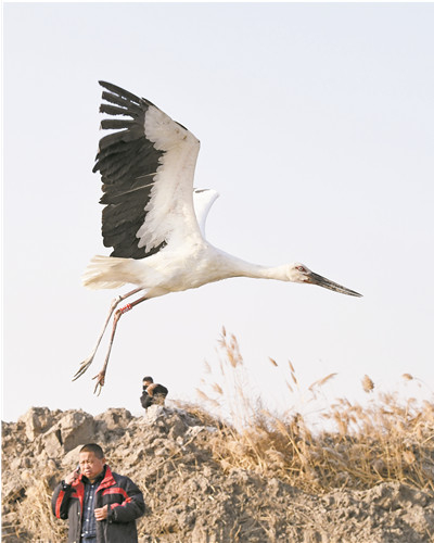 即便重逢,也可能是个悲伤的故事。2012年,天津发生30多只东方白鹳中毒事件,当时王建民和其他志愿者抢救了其中的13只。放飞前,这些东方白鹳被戴上了脚环。