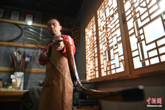 提到为什么还要坚持?鄂建烨说:“现在了解传统弓的人很少,但这是老祖宗留下来的手艺,作为中国人要发展和传承下去。”