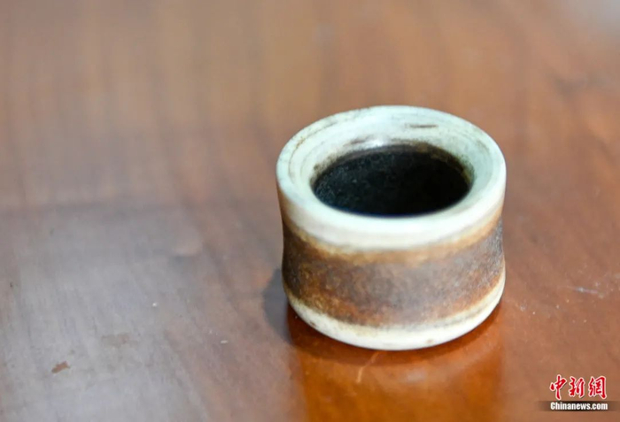 射箭用的扳指,材质为鹿角,带在拉弦手的右手上对拇指起到保护作用。