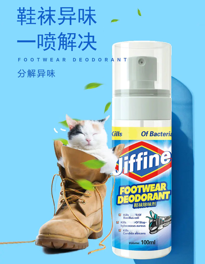 JIFFINE鞋袜喷雾,含有从薄荷中提取出的植素抑制除味配方。