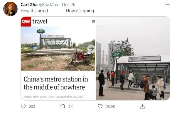 曾被外媒嘲讽为“中国最荒凉地铁站”,3年后“逆袭照”震惊海外网友