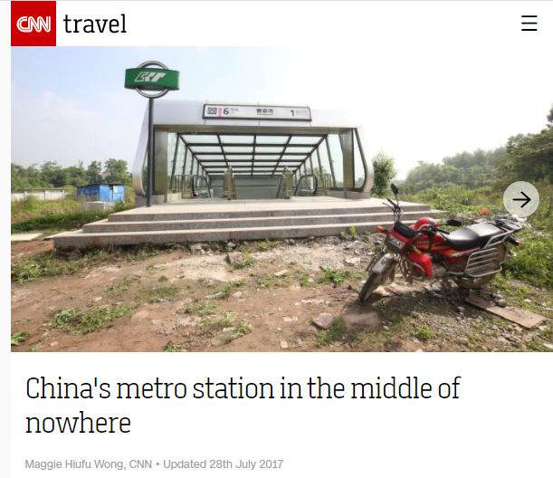 美国有线电视新闻网(CNN)在2017年7月发表的题为《在“无人之地”的中国地铁站》的报道中,调侃重庆曹家湾地铁站是“末日幻想风”。