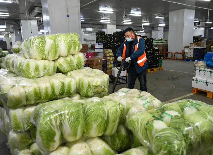 超市寒潮下,备货足,送菜忙