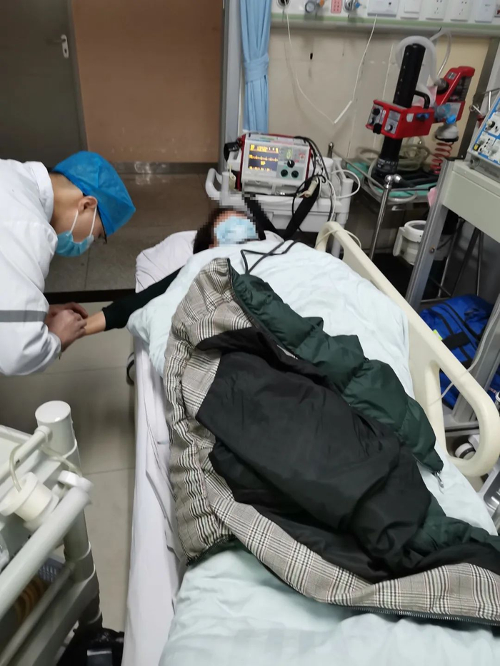 由于廖某身体卡在电动车与新能源车之间,伤情不明,随意挪动可能会加剧伤情,群众不敢轻易移开车辆,直到120救护车赶来,将廖某救出,送往人民医院进行救治。