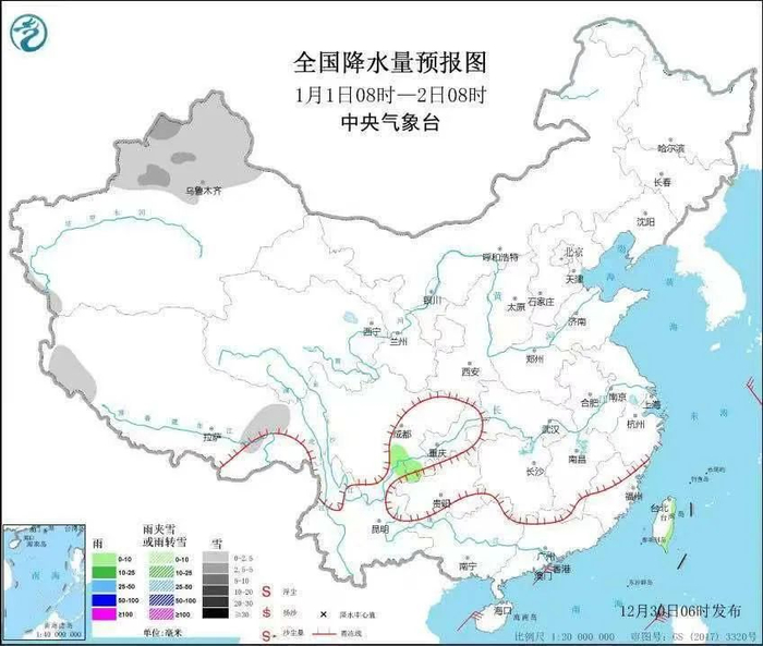 1月1日下午~2日白天,受本地不利扩散条件和上游污染物输送影响,将出现轻度污染,短时中度污染,主要污染时段出现在1月1日夜间~2日早晨,有轻度霾。