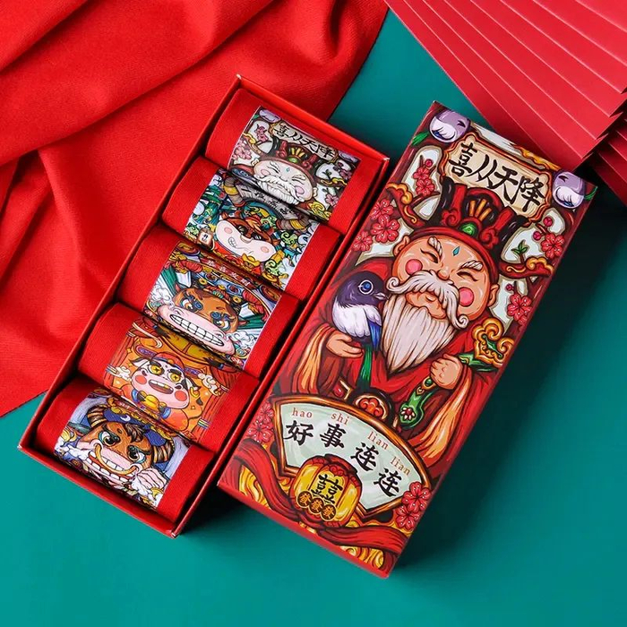 礼盒里面一共有5双,每一双都寓意着平安健康、洪福齐天。