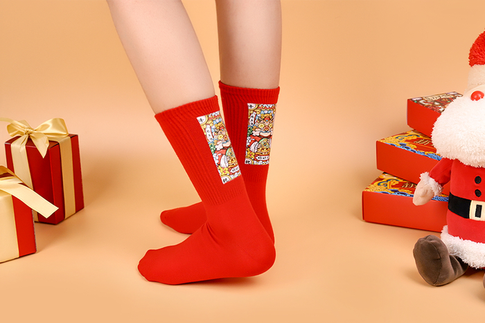大家都知道,中国红有“消灾、辟邪、迎福”的吉兆。把中国红嵌入袜中,寓意来年有福无灾,是美好的祝愿。