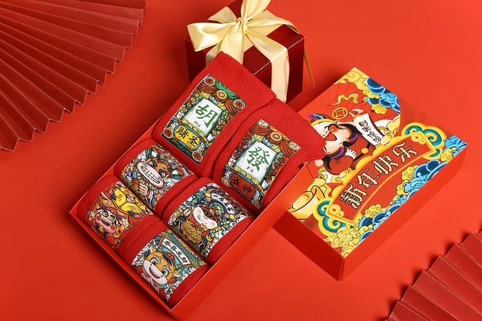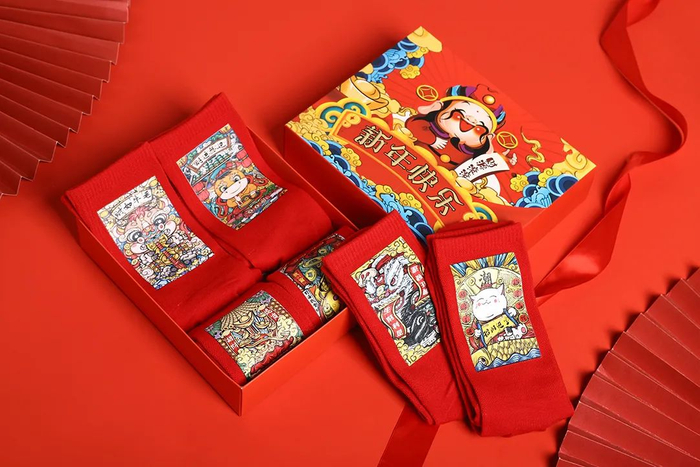 4款鸿运年袜皆是国潮设计。图案在保留传统春节元素的同时,融合了年轻人喜欢的国风创意。穿上它时尚感满满哦!