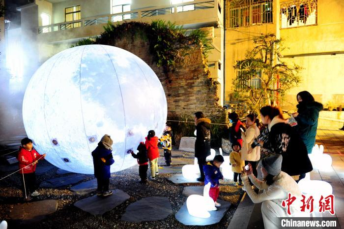 县署旧址附近,20只会发光的“玉兔”会同“明月”组成的萌宠集市成了一处网红打卡点。为了更加接地气,街区的主干道浮桥头街上,还开启了梅城夜市购物周活动。游客购物的同时,还穿插有台湾电音三太子及台湾庙会“官将首”民俗表演,现场热闹非凡。