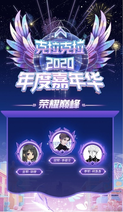 12月1日起,克拉克拉2020年最重要的年度盛典——克拉克拉2020年度嘉年华正式启幕。克拉克拉上千名主播、上百家直播公会冲击榜单,夺取百万大奖。经过30天的激烈争夺,克拉克拉2020年度嘉年华于12月30日晚完美收官,各大赛道奖项结果尘埃落定。