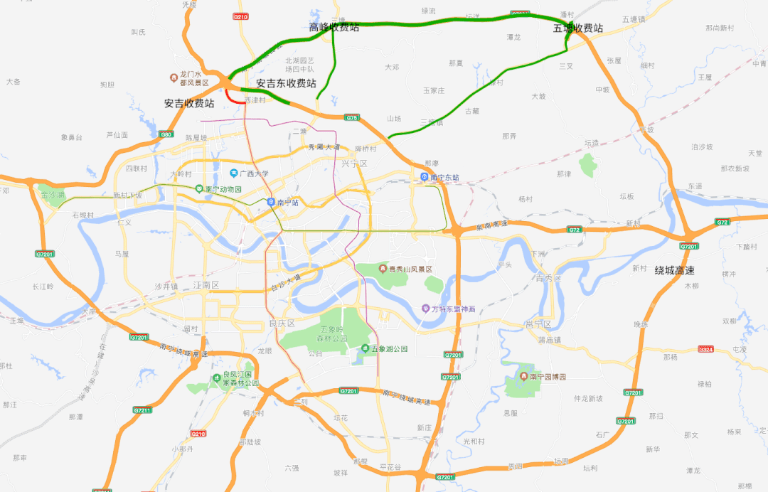 进城:可选择绕开安吉收费站,从安吉东、高峰、五塘收费站进入南宁市区。