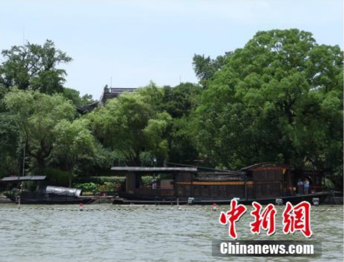 →如今红船虽停在了烟雨楼前,仍保留了当年的风貌