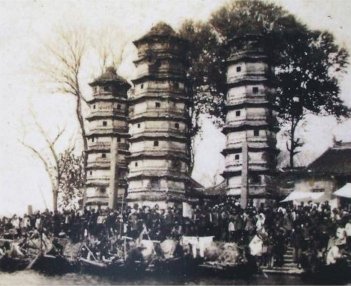 ←上世纪四十年代嘉兴三塔,在古代曾起航标作用