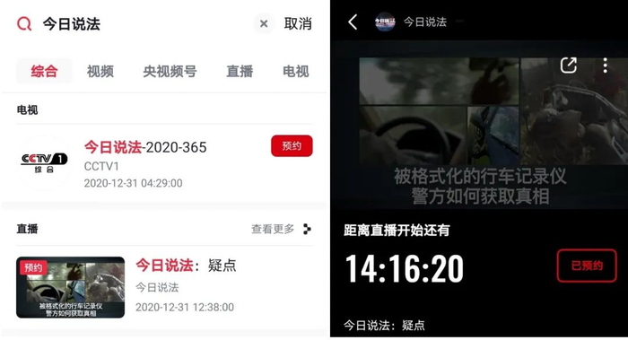 身边没有电视?没关系,每天中午12:35打开央视频今日说法账号,同步收看节目直播,直播间的小伙伴陪你一起讨论案情进展,不要太上头。