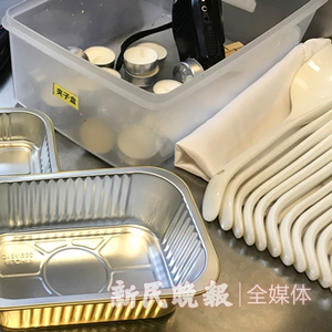 图说:对于堂吃顾客要求提供的打包服务,圆苑餐厅提供的是铝塑盒 裘颖琼 摄(下同)