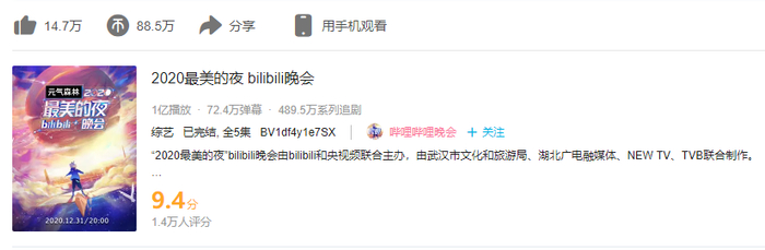 虽不及“bilibili2019最美的夜”惊艳,口碑也因为二次元浓度的降低而出现分化,但B站的“2020最美的夜”依然远甩开各大卫视,以超2.5亿直播人气峰值,交出新年的第一份答卷。
