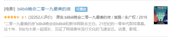B站“2019最美的夜”豆瓣评分9.1 ▲