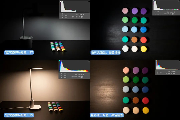 我们买了一盏官方宣称Ra可达95的普通台灯,但实际比较起来,它与巴慕达台灯色彩差异非常大。