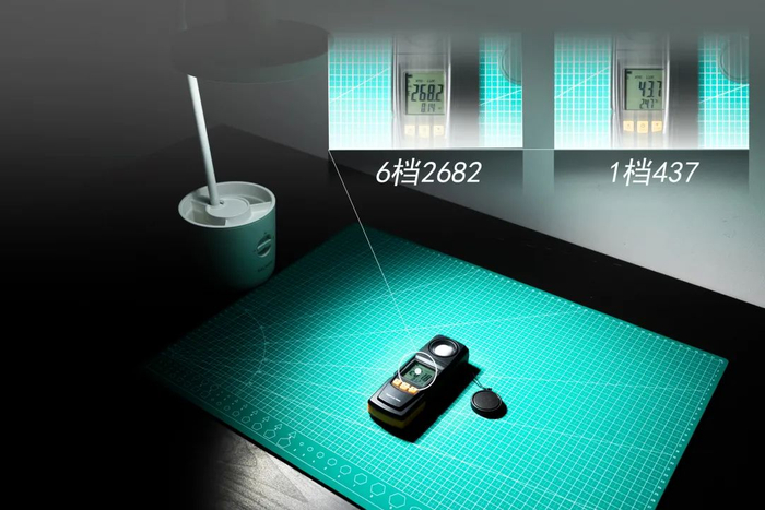 而巴慕达台灯共分1-6档,用照度计测试1档照度为437lx,6档照度为2683lx,完全满足。