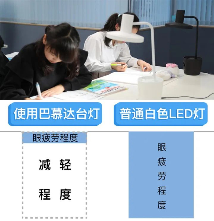 巴慕达曾进行内部主观感受测试,被测试者表示在普通灯光下觉得眼疲劳,而在巴慕达台灯下却几乎没有这种情况。