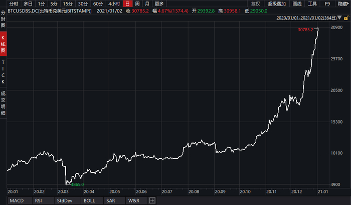 (比特币逼近3.1万美元,来源:Wind)