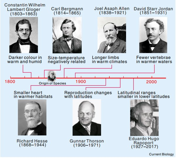 另一种说法则认为,在任何动物群体中,体型最大的动物通常居住在靠近极地的地方,因为较大的身体有助于保存热量。比如北极熊的个头,就要远大于生活在中纬度地区的棕熊。