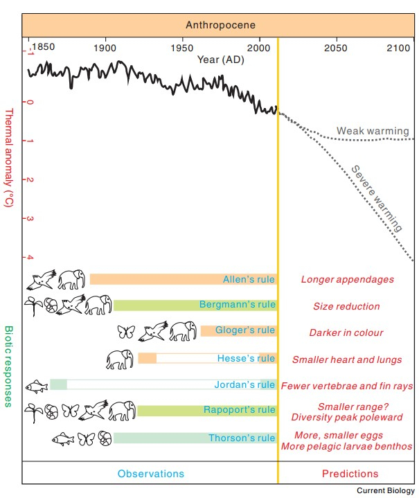 关于气候变暖将如何改变动物的争论其实不算新话题,在19世纪时,人们便开始思考这一问题。当时生物学家发现了多种描述温度对生态和进化影响的“规则”。其中一条规则认为,在炎热的气候下,动物有更大的附属物,比如耳朵、喙等,这样方便散热。