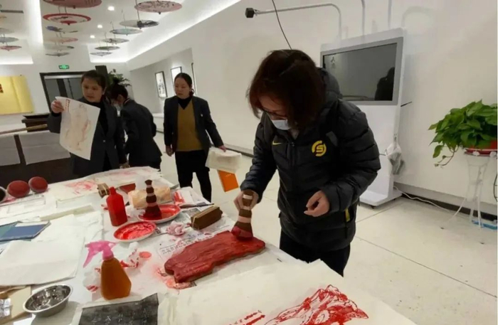 拓印体验位于一楼古籍修复展区,读者在这里可以了解到古籍修复的过程,也可以亲自体验传统的拓印工艺。