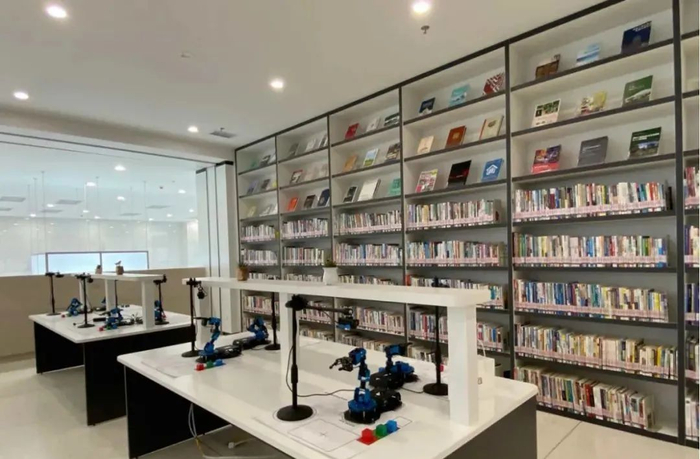 给青少年提供的高科技创客空间,里面可以体验意念赛车、人机对战等,配套相关的科技类书籍。