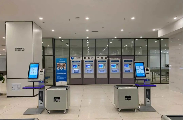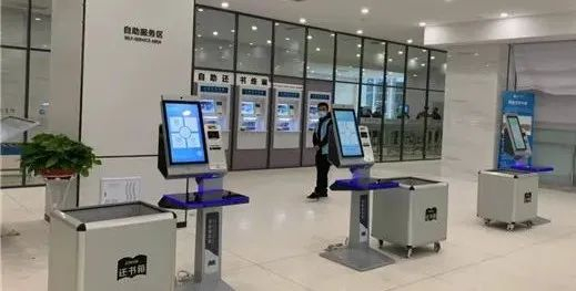 自助服务区可以自助办理图书借阅与归还,自助还书终端联通图书馆智能书库,10分钟之内就可以从书库把书籍运出来送到读者手中。