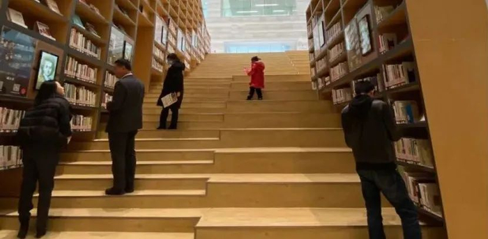 音乐阶梯在二楼的音乐阶梯里,读者可以通过手机扫码听到国内外音乐歌曲,这里也有相关的音乐类书籍供读者借阅。