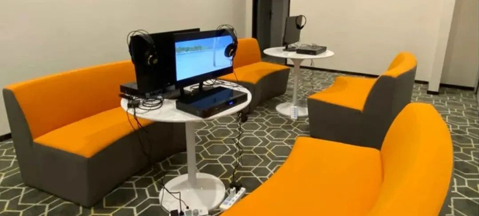 在读者体验上,读者能够通过机器人导览、图书馆数字资源服务、VR虚拟阅读站、寄语触摸屏、光影流书墙、智能书法台等前沿技术手段,利用VR、AR、机器人等全新的服务模式,进入一个现代化图书馆的互动体验环境。