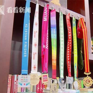 他曾经酷爱跑马拉松,全马最好成绩"4个小时多一点点",办公室里挂满了马拉松的奖牌,甚至把自己唯一一张跑马的照片做成了工牌。"卖菜以后",没有大把的时间,他就坚持在世纪公园绕圈,经常沾沾自喜于自己能在微信运动刷到步数的第一名。
