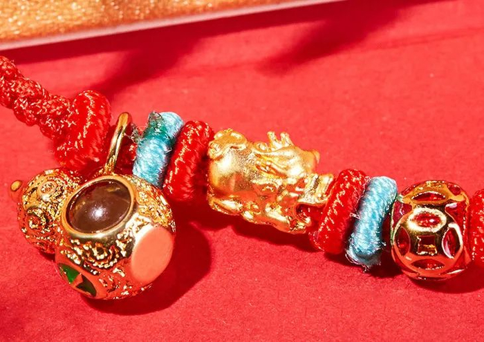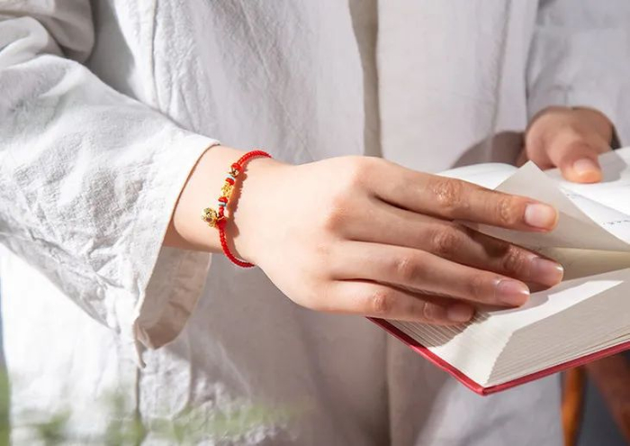 大年三十戴,讨个好彩头;平时戴手上,盼着能红红火火过一年;本命年有它,祈求平平安安,添福加运。