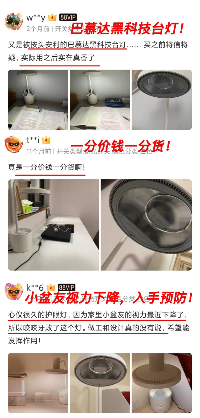 巴慕达曾进行内部主观感受测试,被测试者表示在普通灯光下觉得眼疲劳,而在巴慕达台灯下却几乎没有这种情况。