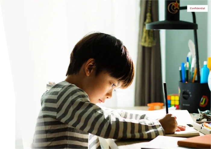 未发育完全的儿童视野范围远小于成人,在专注学习时头部会离书本很近,视线也易被身体阴影遮挡。