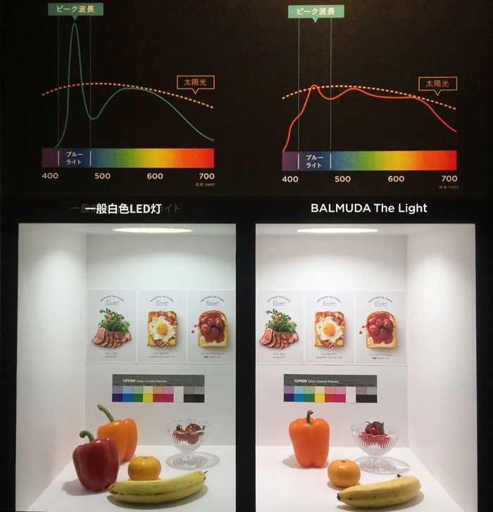 我们买了一盏官方宣称Ra可达95的普通台灯,但实际比较起来,它与巴慕达台灯色彩差异非常大。