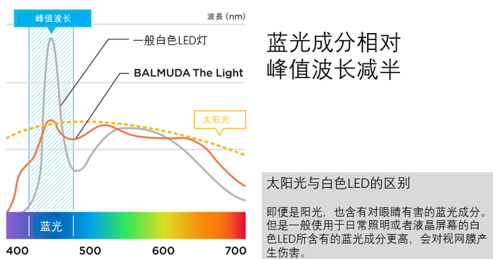 除此考虑外,紫光基底LED,蓝光风险低,波长趋向太阳光,对眼睛十分柔和。