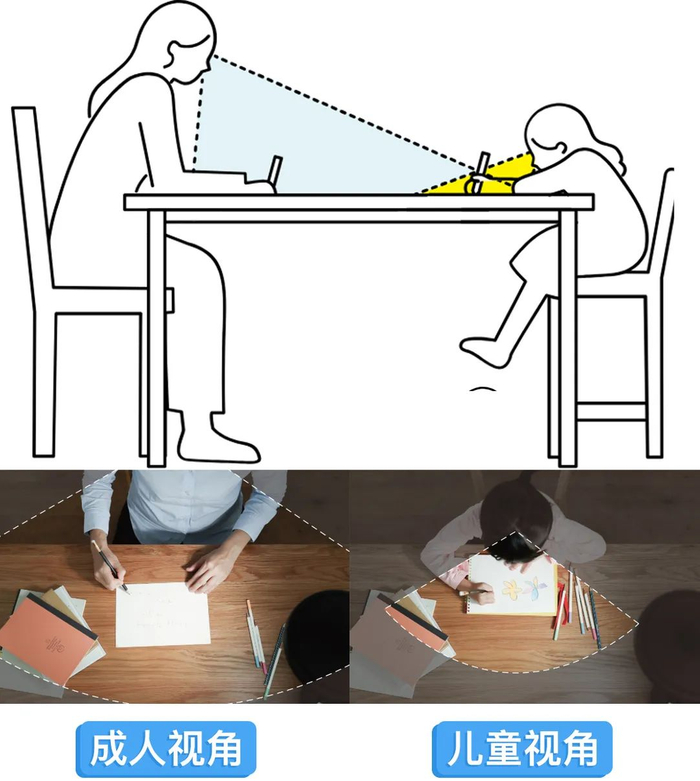 为了看清,孩子们会不自觉的趴在桌上,这是以成人视角无论如何也想不到的原因。