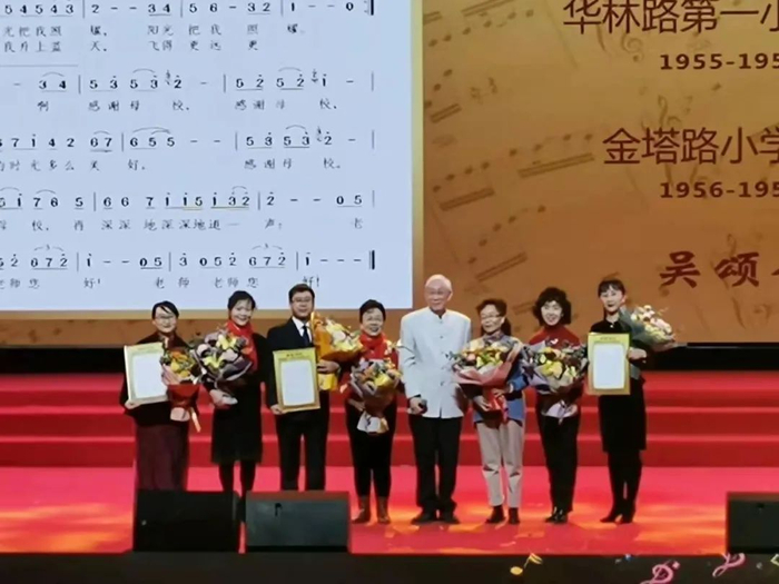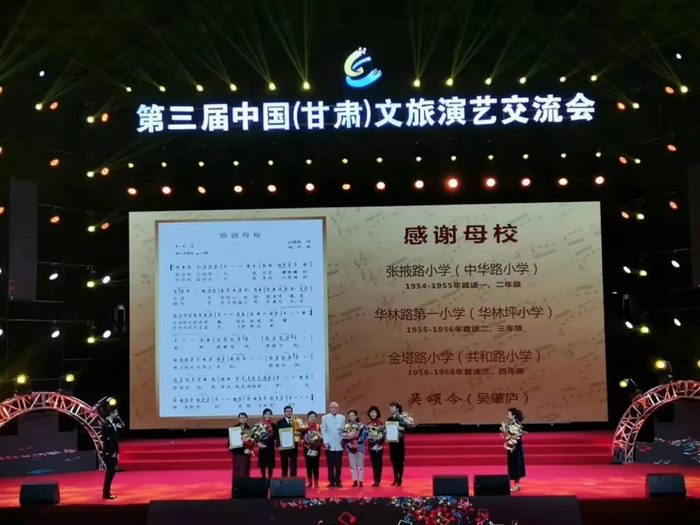 “离别兰州62年,童年的记忆太难忘了。在《兰州晚报》和许多热心人的帮助下,我已经找到了小时候读过书的3所学校。中华路小学现在已经改名为张掖路小学,华林坪小学改名为华林路第一小学,共和路小学改名为金塔路小学。”吴颂今先生不仅在现场和大家分享了他在兰州期间的“寻亲”故事,还特意邀请张掖路小学廉小霞校长、严惠珍老师,华林路第一小学王秉乾校长、颜惠芳、王淑云老师,金塔路小学潘泽凉校长、李俊英老师登台,为大家献花致敬。