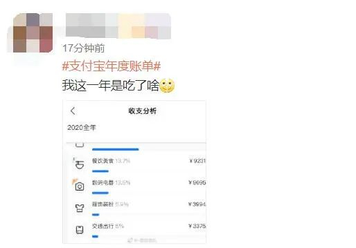 原标题:上班第一天的“暴击”:支付宝年度账单出炉,网友:我果然只知道吃……