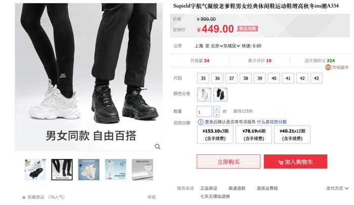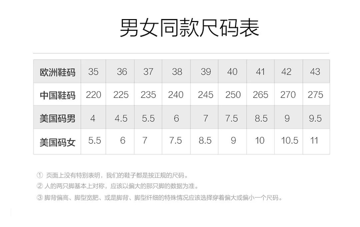就连配色都是黑白最基础的两种颜色,男女同款同色不同码数。