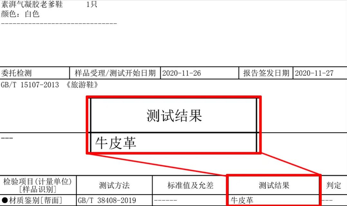 而且质感也好到感人,看了下,鞋面用的可是头层牛皮!有检测报告的。(牛皮革即头层牛皮)