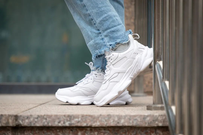 小姐姐随便穿个白色配个牛仔裤就显得人很靓。(另外,这种老爹鞋型还能显腿细,别怪我没提醒你)