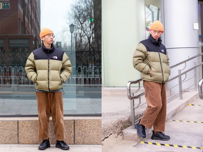 模特小哥在穿了几分钟的时候,就说自己已经出汗了,老暖和了!