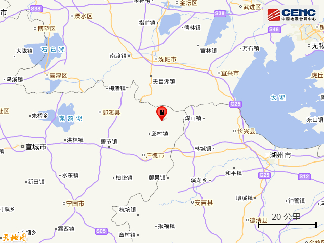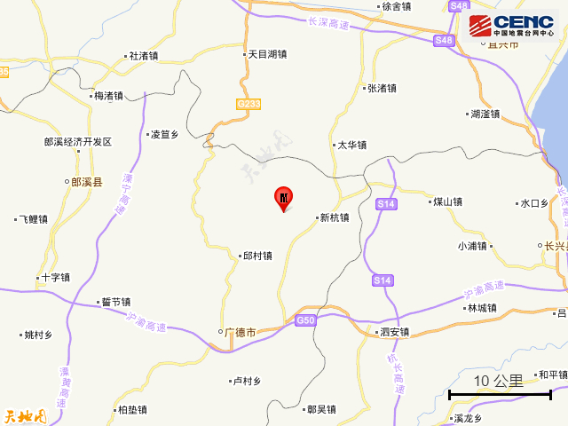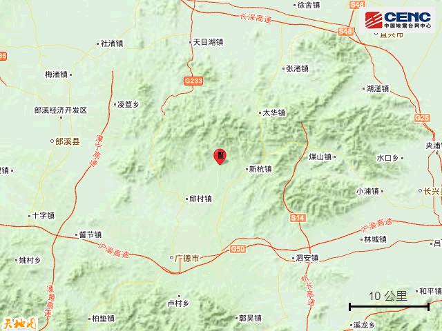 速报参数:据中国地震台网正式测定,1月4日21时49分在安徽宣城市广德县发生3.3级地震,震源深度6千米,震中位于北纬31.08度,东经119.51度。